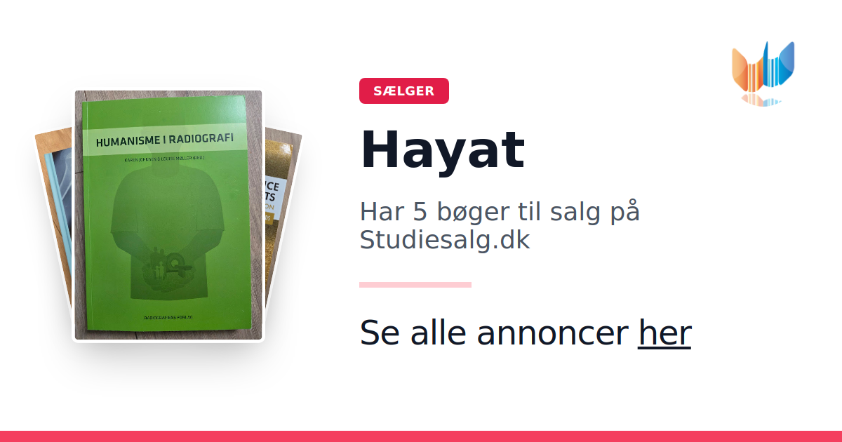 Sæt dine bøger gratis til salg på Studiesalg.dk. Det er tager få minutter, og vi står for betaling og fragt når de bliver solgt.
