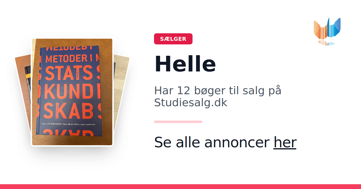 Sæt dine bøger gratis til salg på Studiesalg.dk. Det er tager få minutter, og vi står for betaling og fragt når de bliver solgt.
