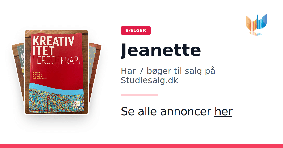Sæt dine bøger gratis til salg på Studiesalg.dk. Det er tager få minutter, og vi står for betaling og fragt når de bliver solgt.