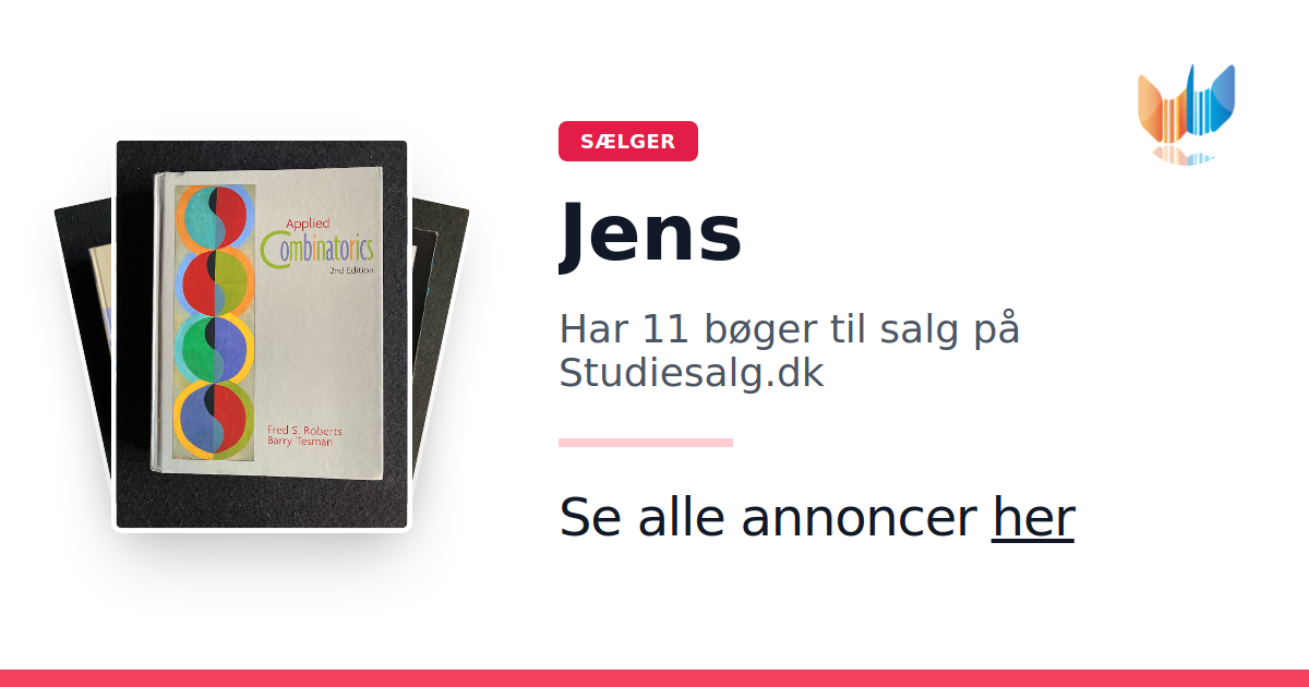 Sæt dine bøger gratis til salg på Studiesalg.dk. Det er tager få minutter, og vi står for betaling og fragt når de bliver solgt.