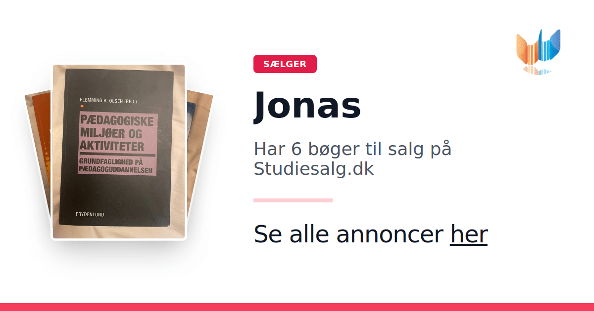 Sæt dine bøger gratis til salg på Studiesalg.dk. Det er tager få minutter, og vi står for betaling og fragt når de bliver solgt.