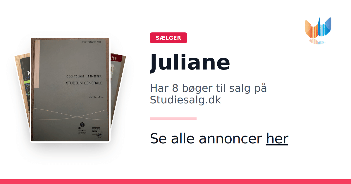 Sæt dine bøger gratis til salg på Studiesalg.dk. Det er tager få minutter, og vi står for betaling og fragt når de bliver solgt.