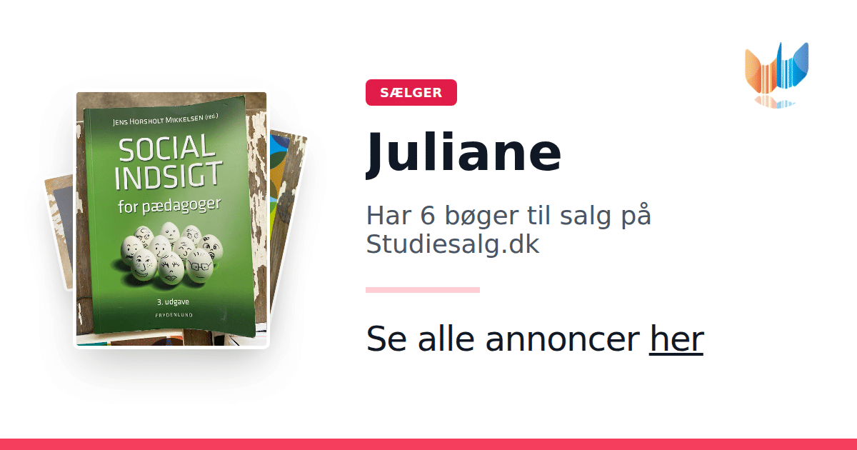 Sæt dine bøger gratis til salg på Studiesalg.dk. Det er tager få minutter, og vi står for betaling og fragt når de bliver solgt.