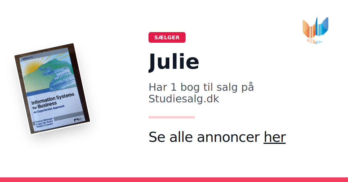 Sæt dine bøger gratis til salg på Studiesalg.dk. Det er tager få minutter, og vi står for betaling og fragt når de bliver solgt.