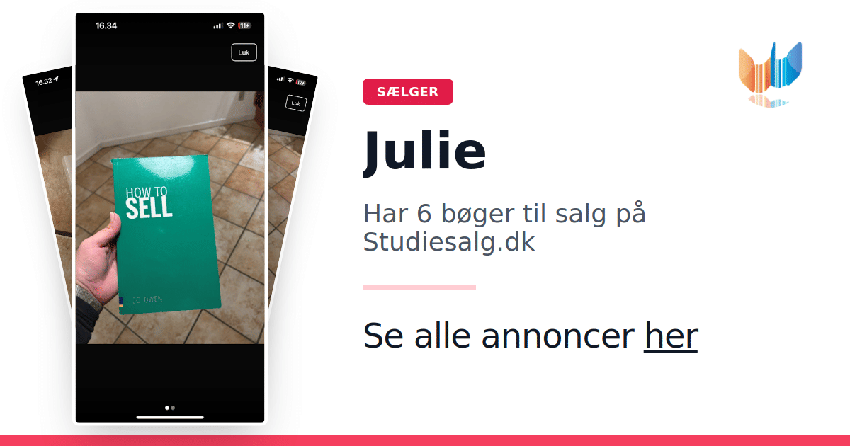 Sæt dine bøger gratis til salg på Studiesalg.dk. Det er tager få minutter, og vi står for betaling og fragt når de bliver solgt.