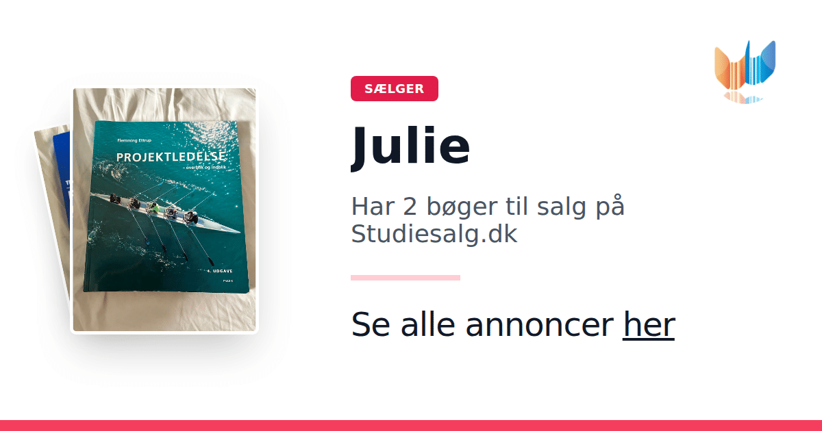 Sæt dine bøger gratis til salg på Studiesalg.dk. Det er tager få minutter, og vi står for betaling og fragt når de bliver solgt.