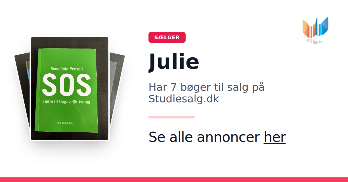 Sæt dine bøger gratis til salg på Studiesalg.dk. Det er tager få minutter, og vi står for betaling og fragt når de bliver solgt.