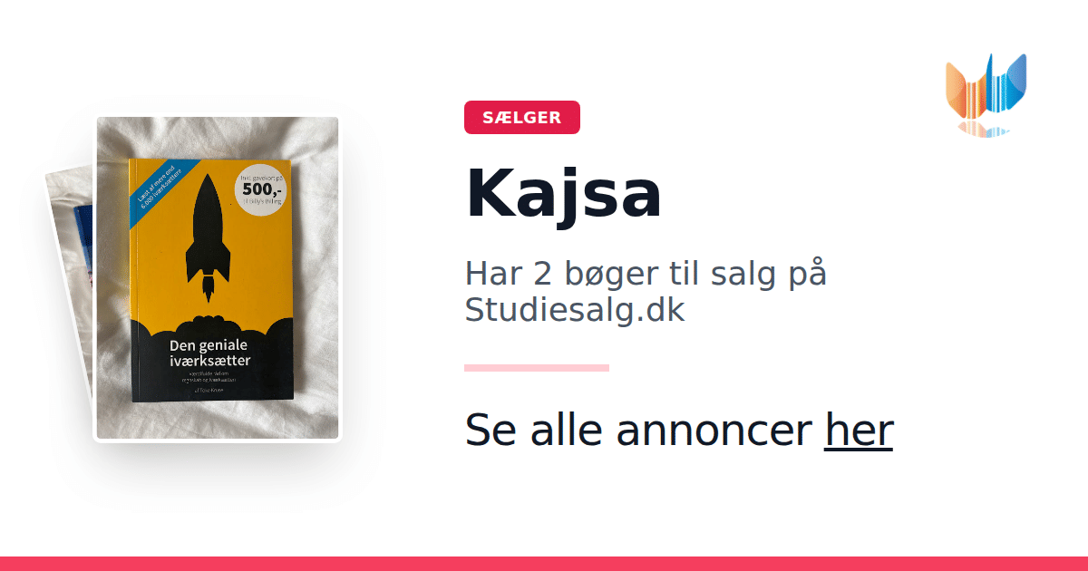 Sæt dine bøger gratis til salg på Studiesalg.dk. Det er tager få minutter, og vi står for betaling og fragt når de bliver solgt.