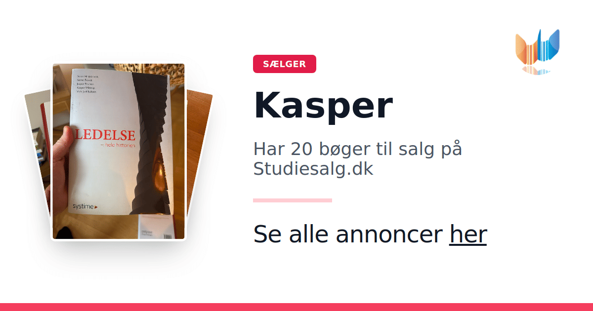 Sæt dine bøger gratis til salg på Studiesalg.dk. Det er tager få minutter, og vi står for betaling og fragt når de bliver solgt.