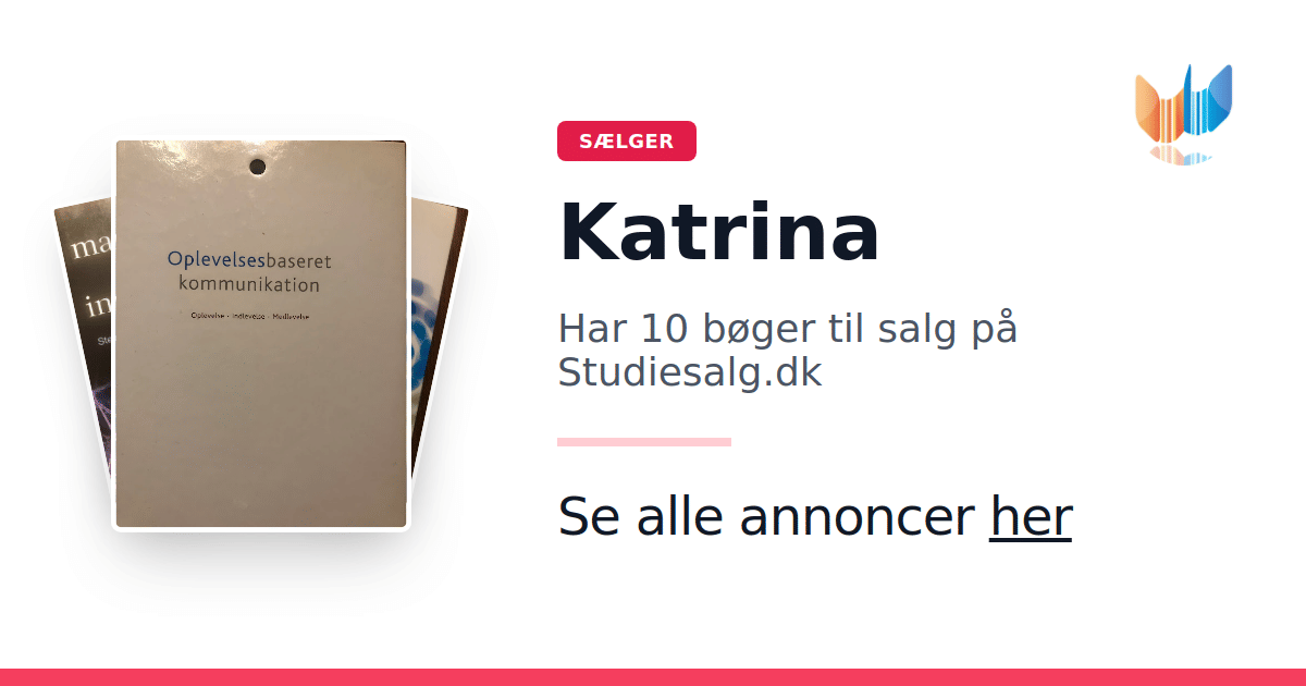 Sæt dine bøger gratis til salg på Studiesalg.dk. Det er tager få minutter, og vi står for betaling og fragt når de bliver solgt.