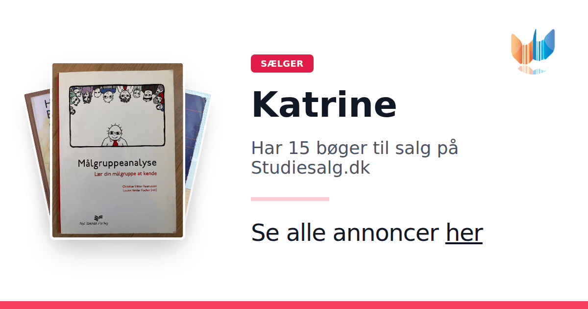 Sæt dine bøger gratis til salg på Studiesalg.dk. Det er tager få minutter, og vi står for betaling og fragt når de bliver solgt.