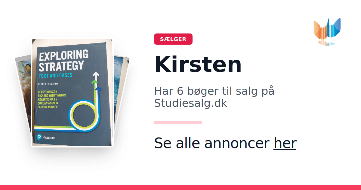 Sæt dine bøger gratis til salg på Studiesalg.dk. Det er tager få minutter, og vi står for betaling og fragt når de bliver solgt.