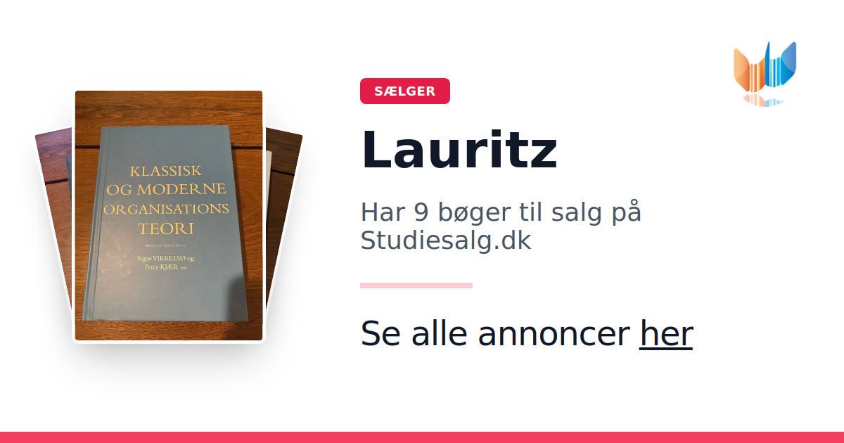Sæt dine bøger gratis til salg på Studiesalg.dk. Det er tager få minutter, og vi står for betaling og fragt når de bliver solgt.