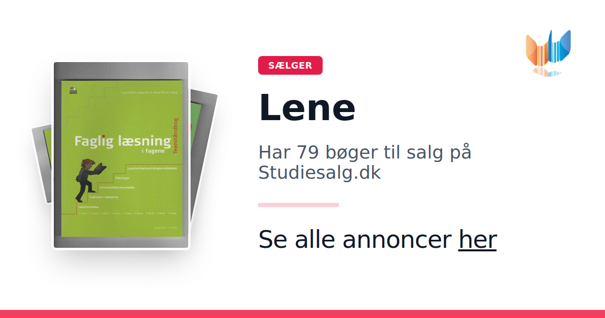 Sæt dine bøger gratis til salg på Studiesalg.dk. Det er tager få minutter, og vi står for betaling og fragt når de bliver solgt.