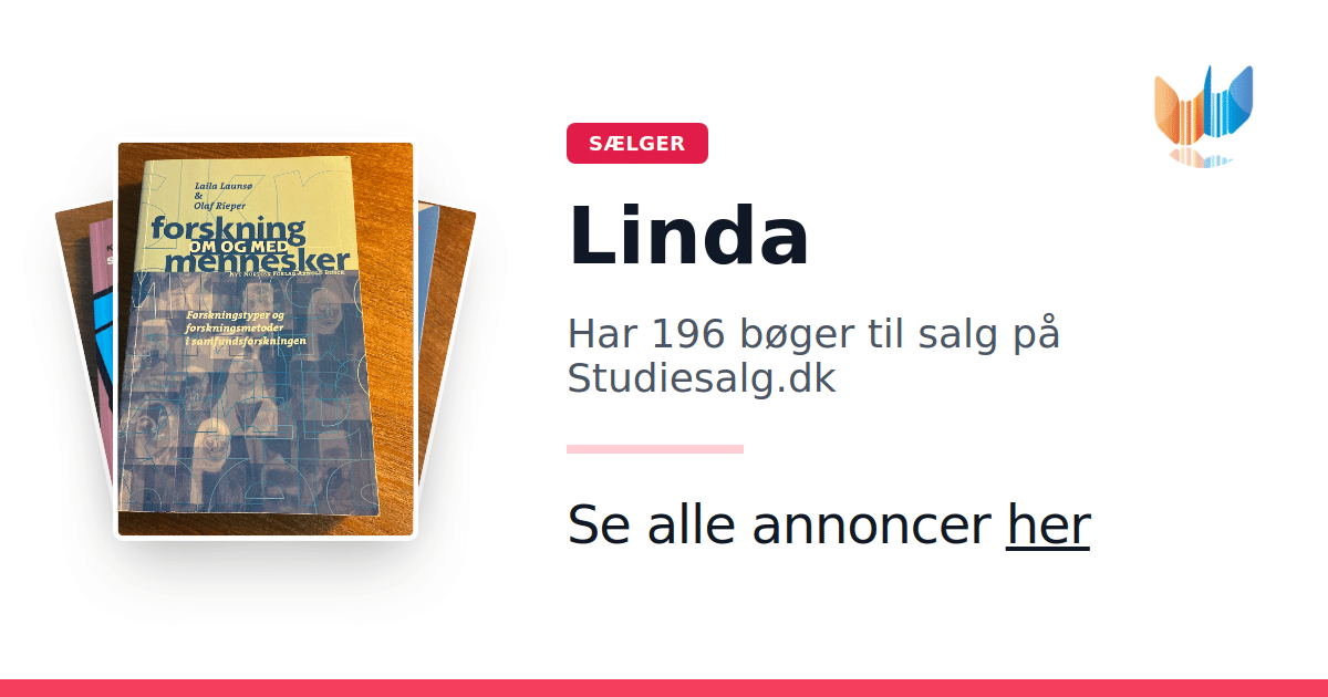 Sæt dine bøger gratis til salg på Studiesalg.dk. Det er tager få minutter, og vi står for betaling og fragt når de bliver solgt.