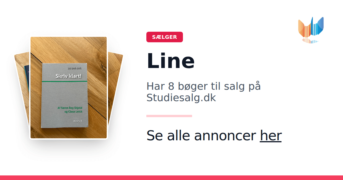 Sæt dine bøger gratis til salg på Studiesalg.dk. Det er tager få minutter, og vi står for betaling og fragt når de bliver solgt.