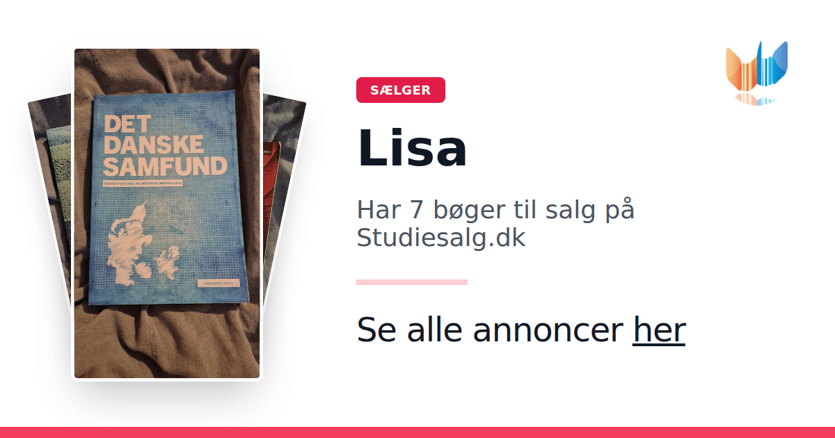 Sæt dine bøger gratis til salg på Studiesalg.dk. Det er tager få minutter, og vi står for betaling og fragt når de bliver solgt.