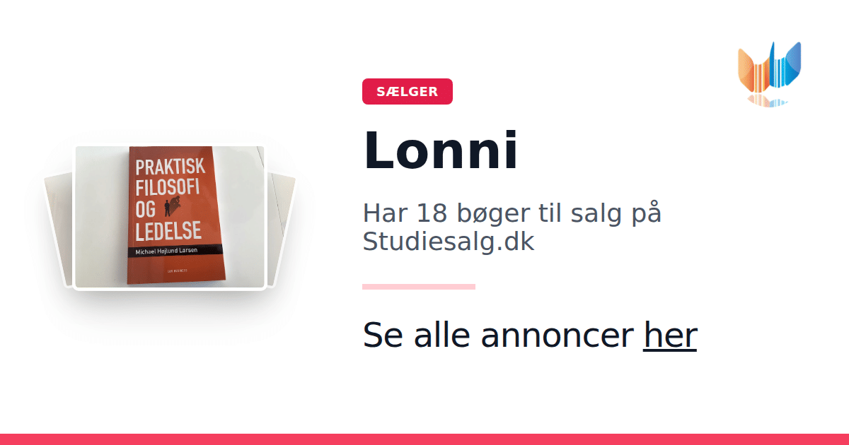 Sæt dine bøger gratis til salg på Studiesalg.dk. Det er tager få minutter, og vi står for betaling og fragt når de bliver solgt.