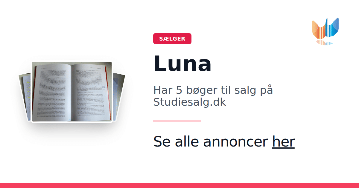 Sæt dine bøger gratis til salg på Studiesalg.dk. Det er tager få minutter, og vi står for betaling og fragt når de bliver solgt.