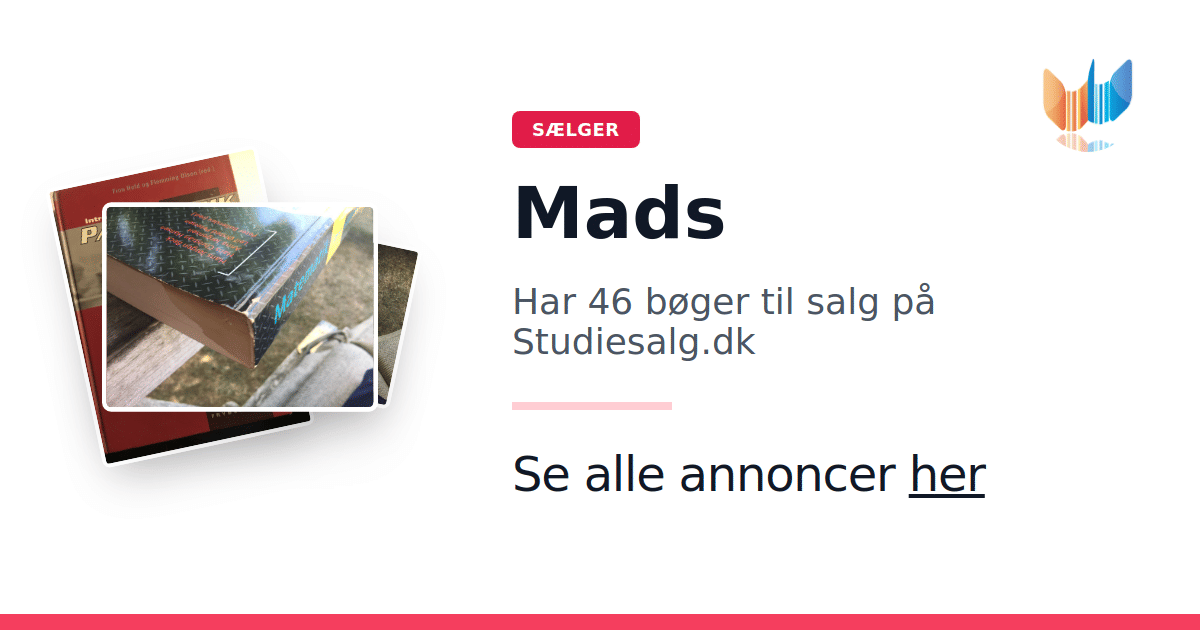 Sæt dine bøger gratis til salg på Studiesalg.dk. Det er tager få minutter, og vi står for betaling og fragt når de bliver solgt.