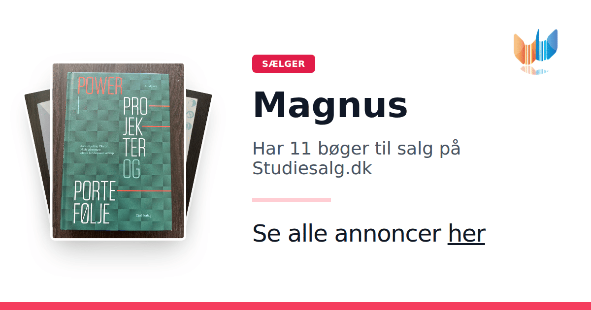 Sæt dine bøger gratis til salg på Studiesalg.dk. Det er tager få minutter, og vi står for betaling og fragt når de bliver solgt.