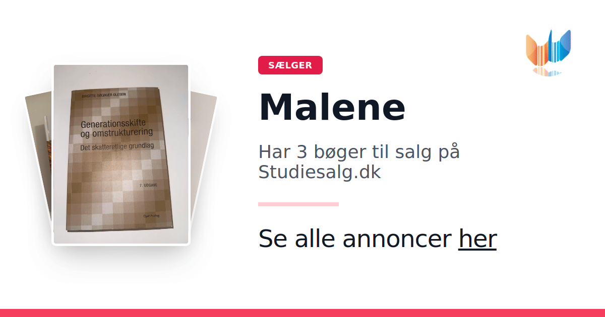 Sæt dine bøger gratis til salg på Studiesalg.dk. Det er tager få minutter, og vi står for betaling og fragt når de bliver solgt.