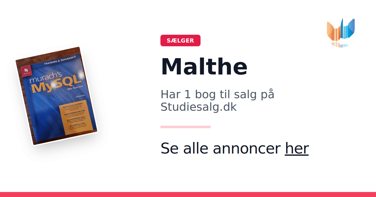 Sæt dine bøger gratis til salg på Studiesalg.dk. Det er tager få minutter, og vi står for betaling og fragt når de bliver solgt.