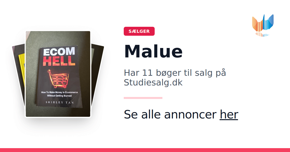 Sæt dine bøger gratis til salg på Studiesalg.dk. Det er tager få minutter, og vi står for betaling og fragt når de bliver solgt.