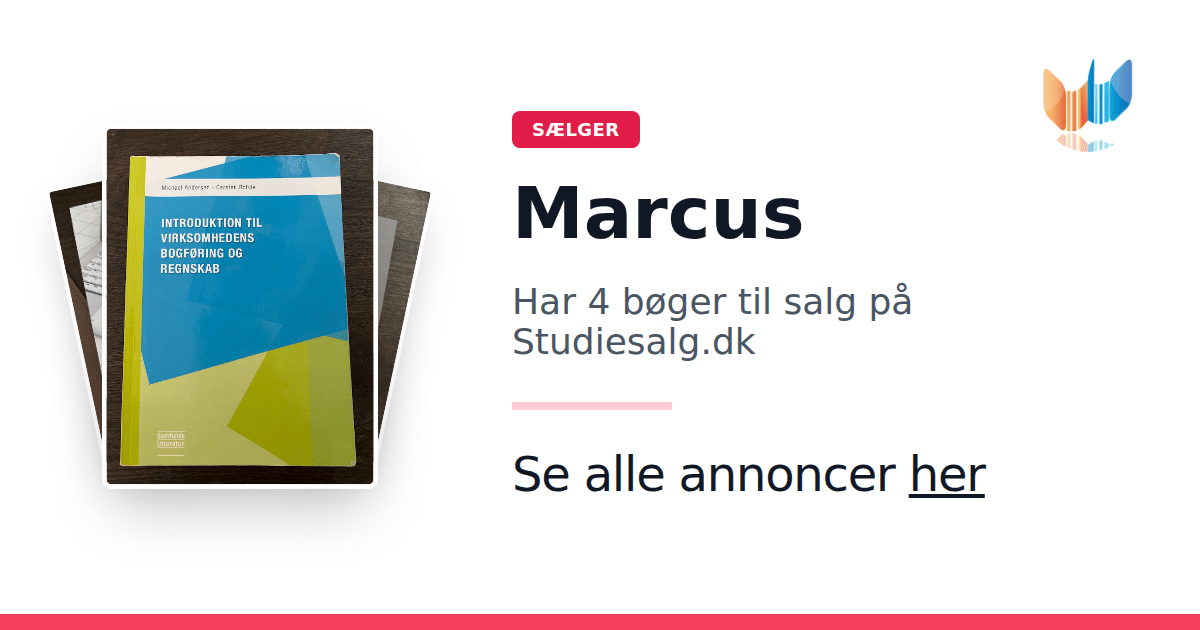 Sæt dine bøger gratis til salg på Studiesalg.dk. Det er tager få minutter, og vi står for betaling og fragt når de bliver solgt.