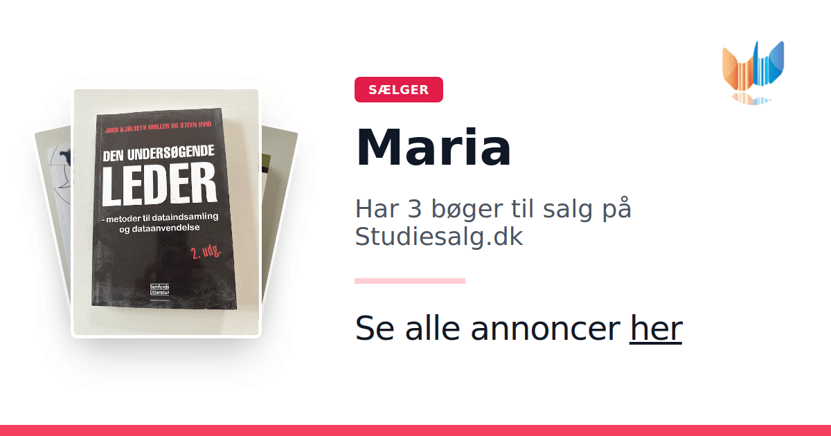 Sæt dine bøger gratis til salg på Studiesalg.dk. Det er tager få minutter, og vi står for betaling og fragt når de bliver solgt.