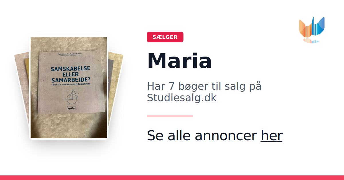 Sæt dine bøger gratis til salg på Studiesalg.dk. Det er tager få minutter, og vi står for betaling og fragt når de bliver solgt.
