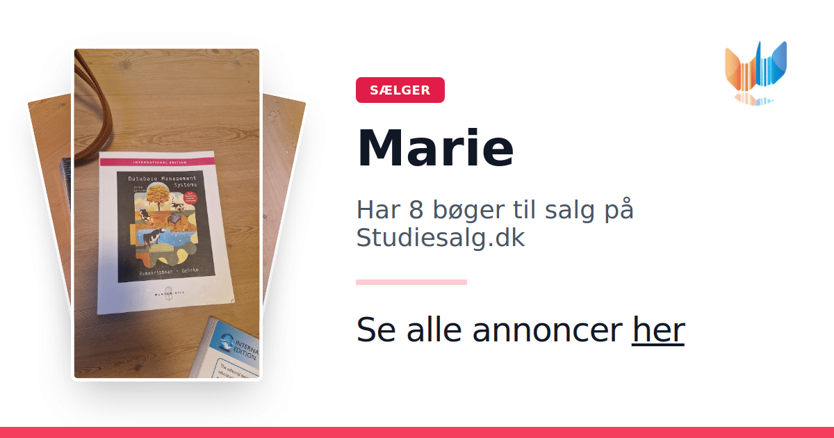 Sæt dine bøger gratis til salg på Studiesalg.dk. Det er tager få minutter, og vi står for betaling og fragt når de bliver solgt.