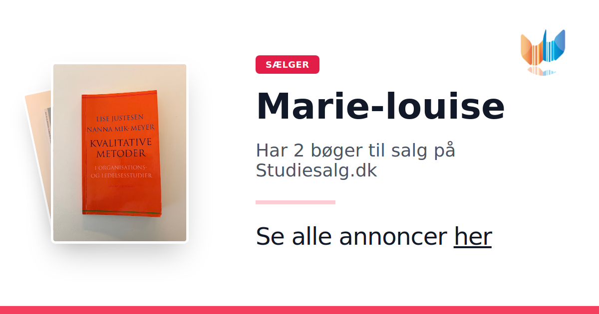 Sæt dine bøger gratis til salg på Studiesalg.dk. Det er tager få minutter, og vi står for betaling og fragt når de bliver solgt.