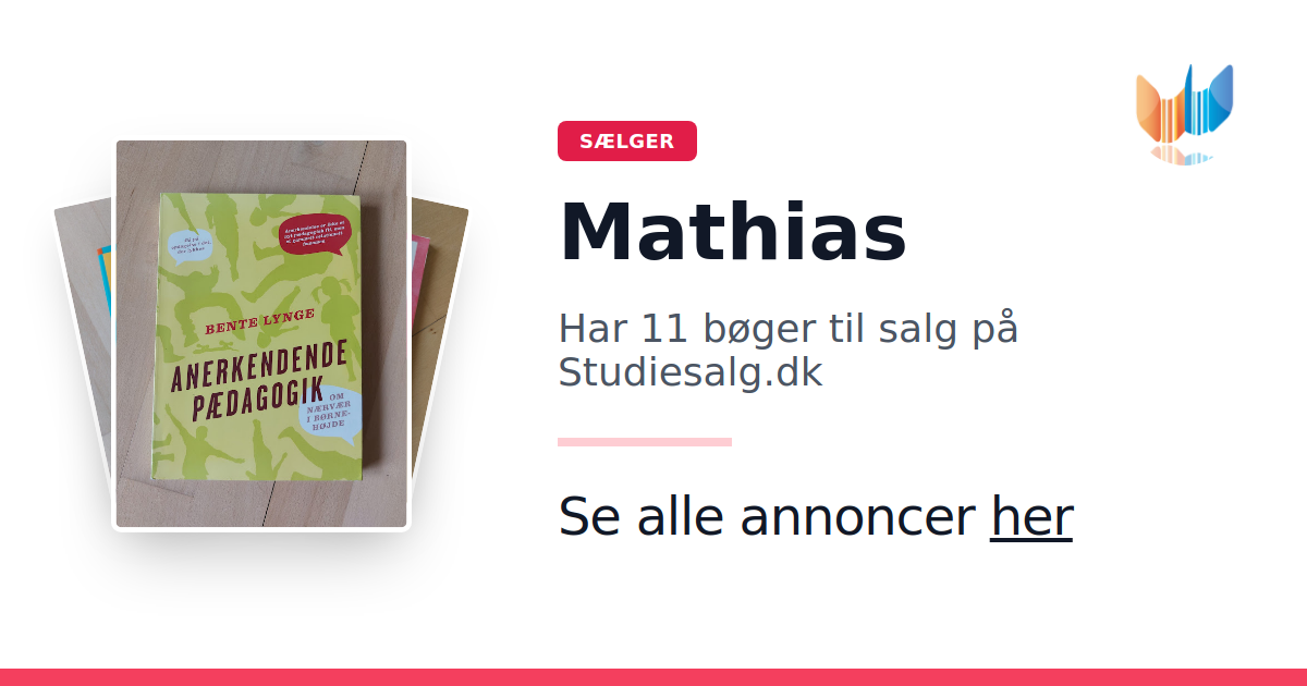 Sæt dine bøger gratis til salg på Studiesalg.dk. Det er tager få minutter, og vi står for betaling og fragt når de bliver solgt.
