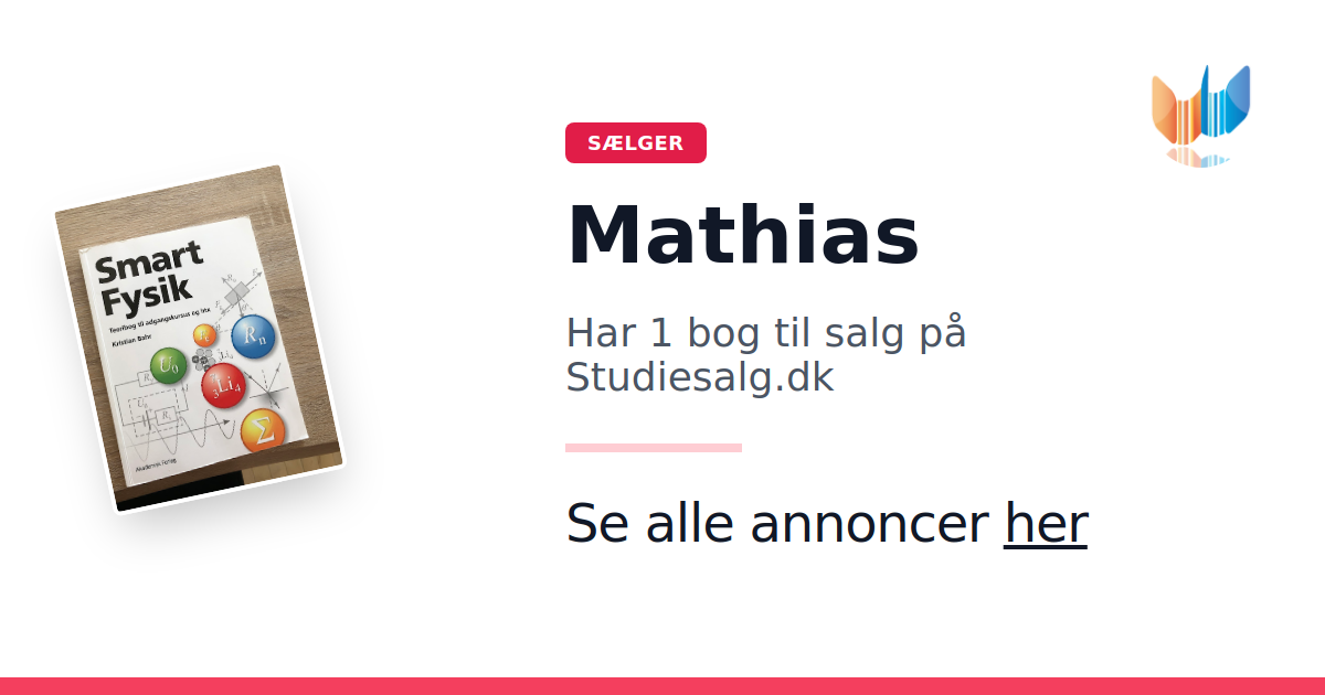 Sæt dine bøger gratis til salg på Studiesalg.dk. Det er tager få minutter, og vi står for betaling og fragt når de bliver solgt.