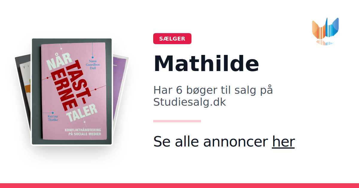 Sæt dine bøger gratis til salg på Studiesalg.dk. Det er tager få minutter, og vi står for betaling og fragt når de bliver solgt.