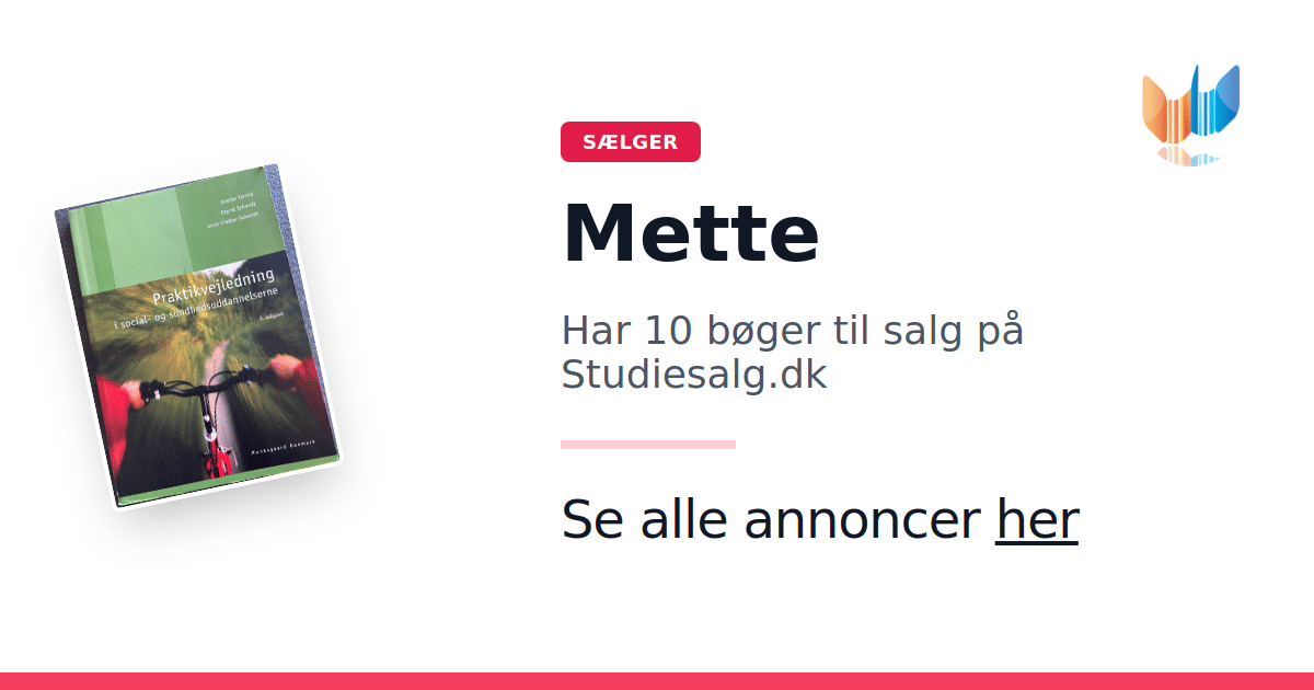 Sæt dine bøger gratis til salg på Studiesalg.dk. Det er tager få minutter, og vi står for betaling og fragt når de bliver solgt.