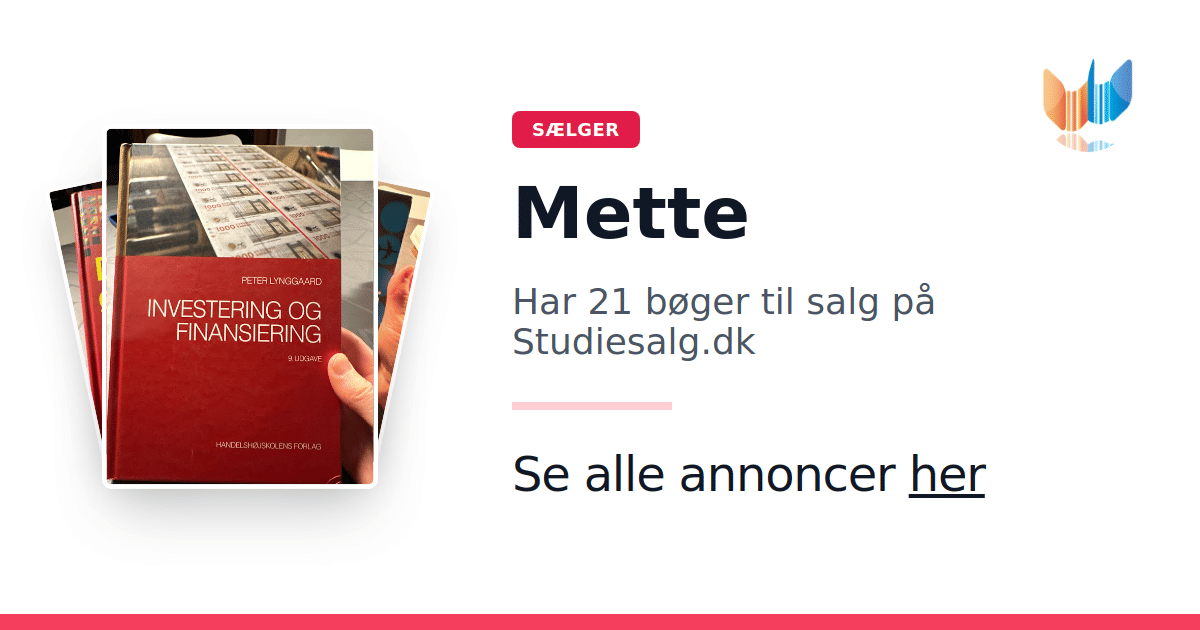 Sæt dine bøger gratis til salg på Studiesalg.dk. Det er tager få minutter, og vi står for betaling og fragt når de bliver solgt.
