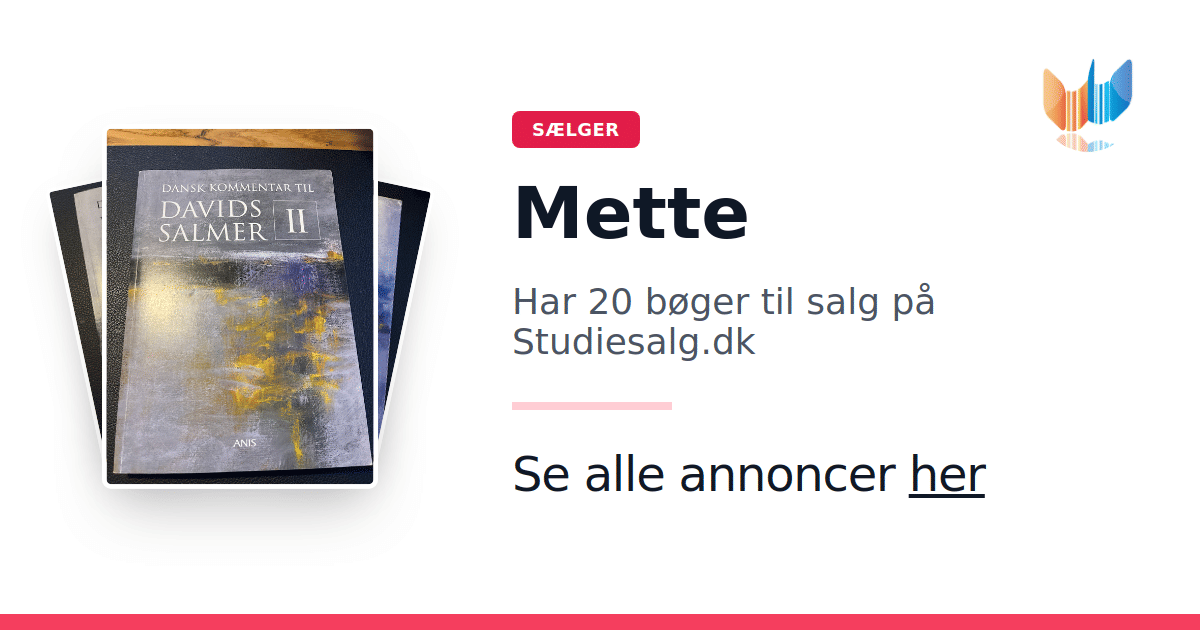 Sæt dine bøger gratis til salg på Studiesalg.dk. Det er tager få minutter, og vi står for betaling og fragt når de bliver solgt.