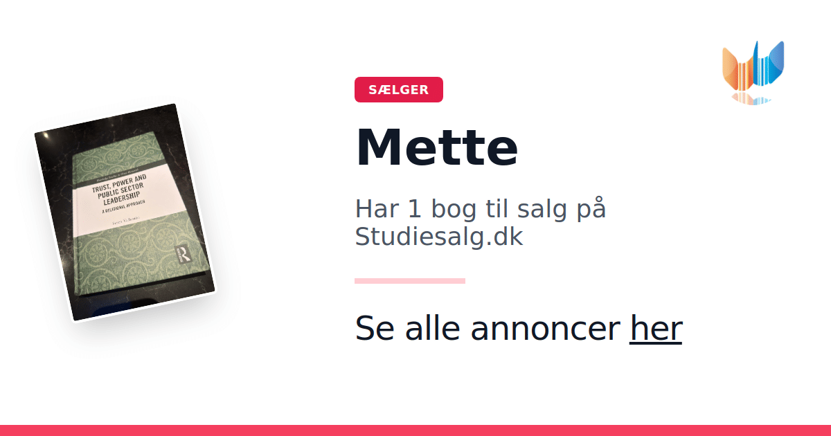 Sæt dine bøger gratis til salg på Studiesalg.dk. Det er tager få minutter, og vi står for betaling og fragt når de bliver solgt.