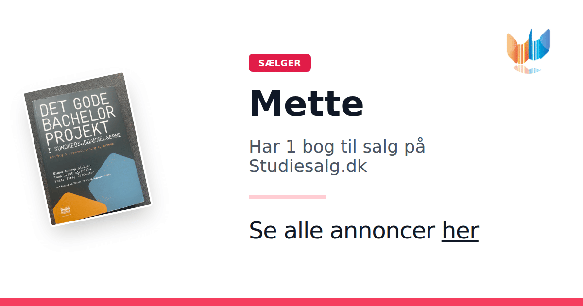 Sæt dine bøger gratis til salg på Studiesalg.dk. Det er tager få minutter, og vi står for betaling og fragt når de bliver solgt.