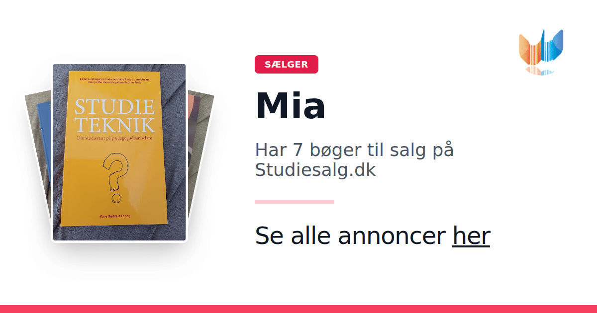 Sæt dine bøger gratis til salg på Studiesalg.dk. Det er tager få minutter, og vi står for betaling og fragt når de bliver solgt.