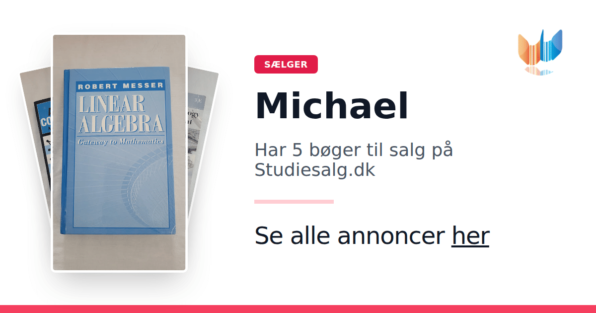 Sæt dine bøger gratis til salg på Studiesalg.dk. Det er tager få minutter, og vi står for betaling og fragt når de bliver solgt.