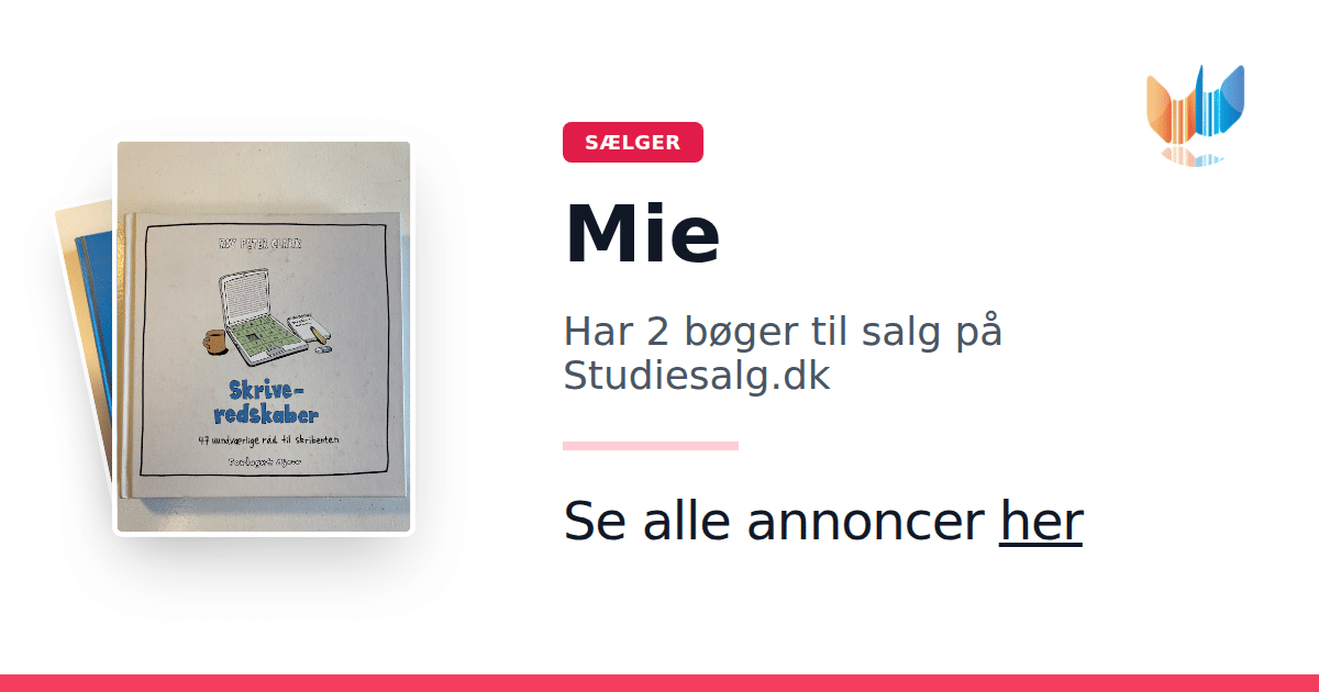 Sæt dine bøger gratis til salg på Studiesalg.dk. Det er tager få minutter, og vi står for betaling og fragt når de bliver solgt.