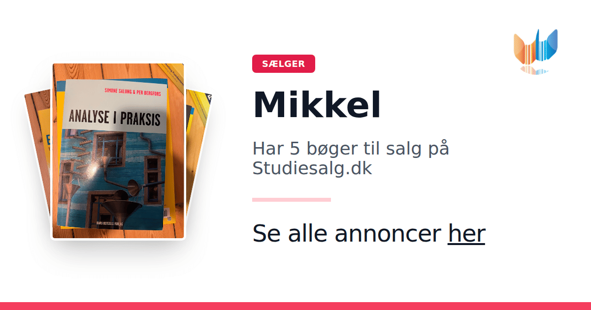 Sæt dine bøger gratis til salg på Studiesalg.dk. Det er tager få minutter, og vi står for betaling og fragt når de bliver solgt.