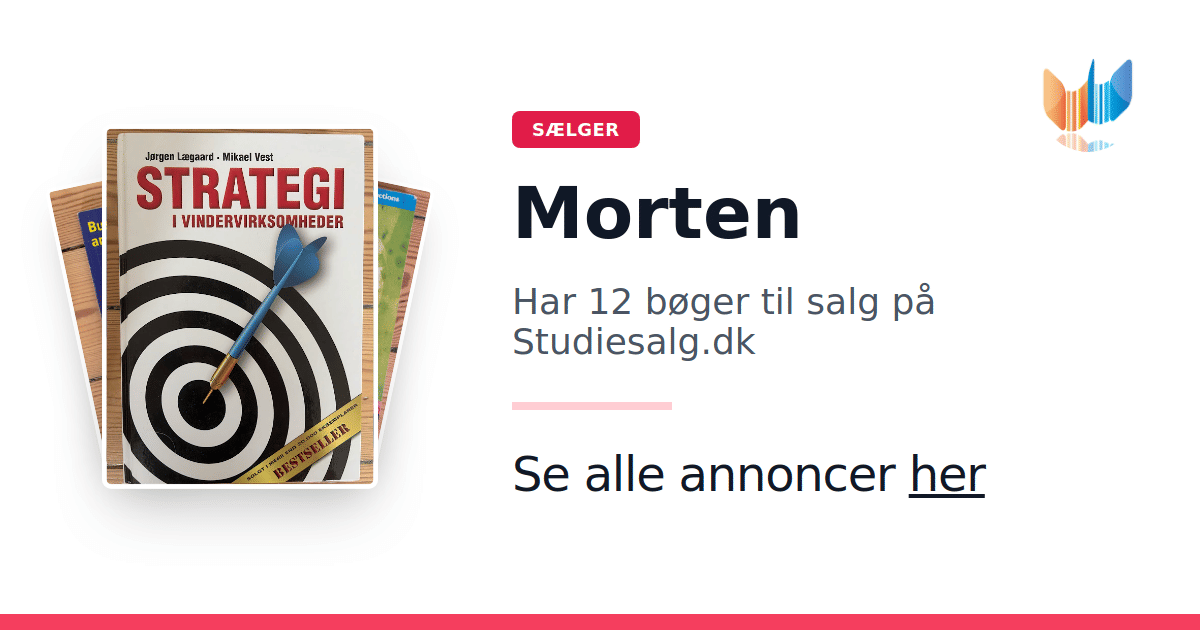 Sæt dine bøger gratis til salg på Studiesalg.dk. Det er tager få minutter, og vi står for betaling og fragt når de bliver solgt.