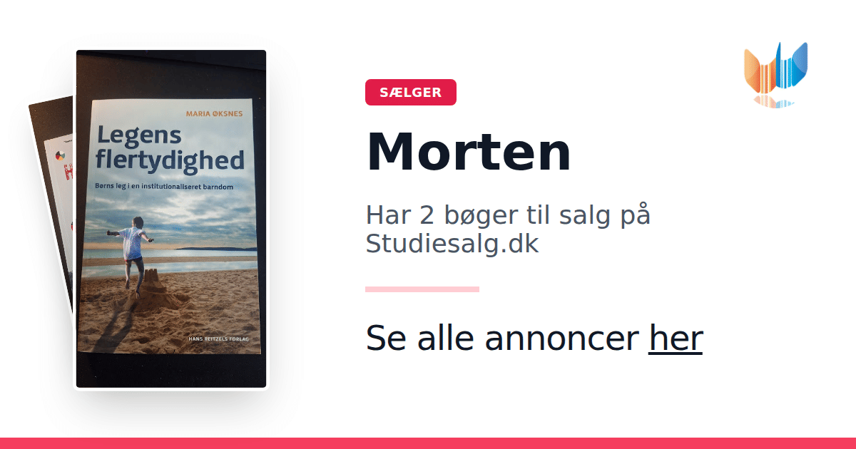 Sæt dine bøger gratis til salg på Studiesalg.dk. Det er tager få minutter, og vi står for betaling og fragt når de bliver solgt.