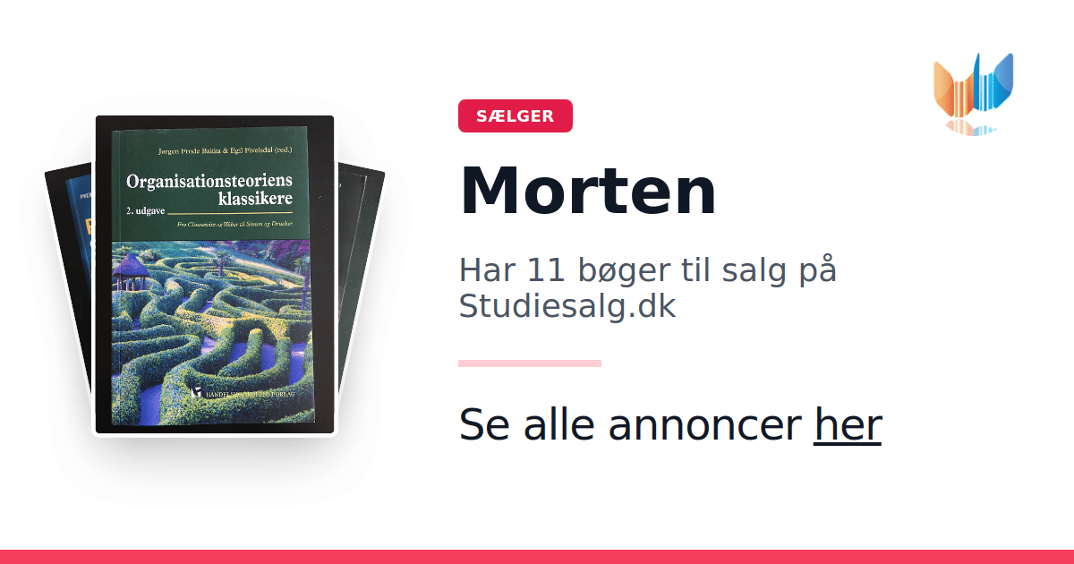 Sæt dine bøger gratis til salg på Studiesalg.dk. Det er tager få minutter, og vi står for betaling og fragt når de bliver solgt.