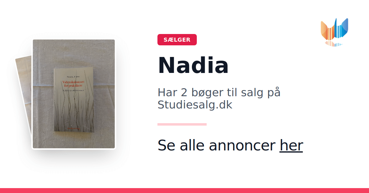 Sæt dine bøger gratis til salg på Studiesalg.dk. Det er tager få minutter, og vi står for betaling og fragt når de bliver solgt.