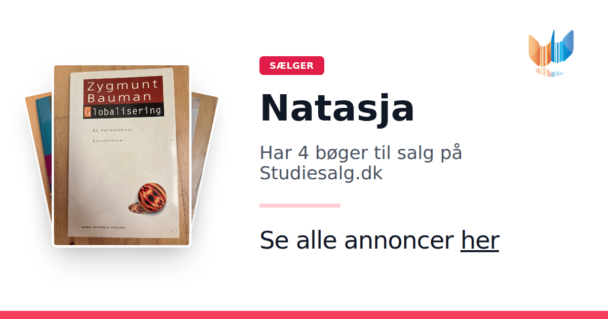 Sæt dine bøger gratis til salg på Studiesalg.dk. Det er tager få minutter, og vi står for betaling og fragt når de bliver solgt.